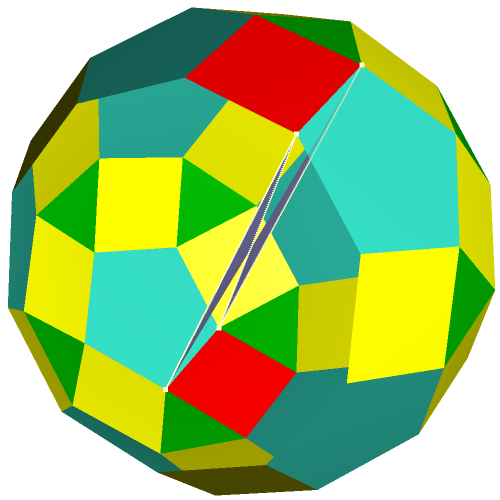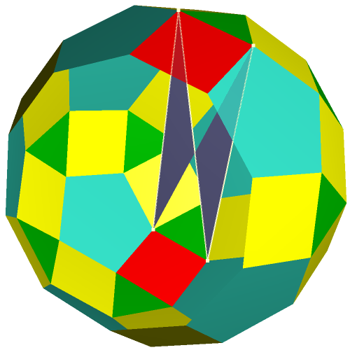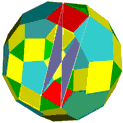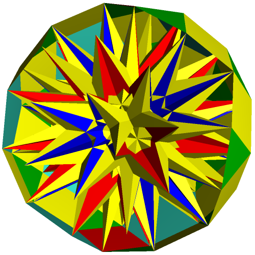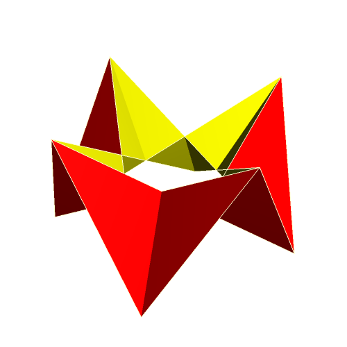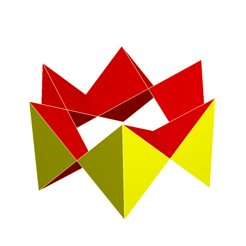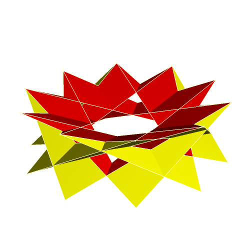 The following gallery shows some examples of crown polyhedra which were created from uniform polyhedra. All models were created with the software "Great Stella". The gallery is organized in that way that a click on a thumbnail opens an enlarged picture. If you click on the large picture, a VRML-model is available which can be handled with a player (e. g. the cortona player).