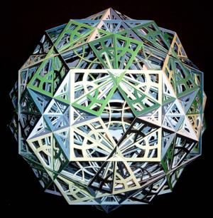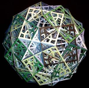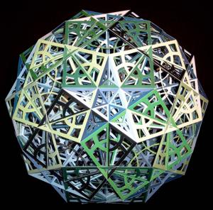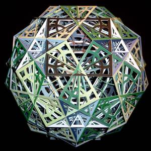 Le rhombicosaèdre (w96) est fait de carrées et de 20 hexagones. Ce modèle est construit avec l'aide du programme Great Stella . Avec ce programme vous pouvez ouvrir le STEL-modèle. |